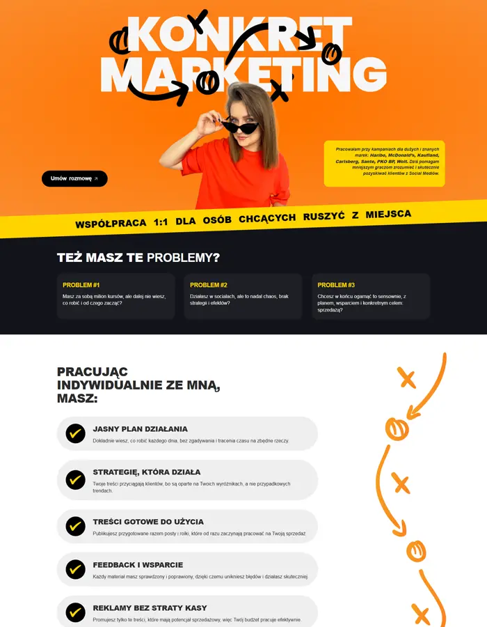 Na końcu klient nie musi się domyślać, co zrobić dalej. Strona jasno prowadzi go do zakupu, zapisu czy kontaktu.