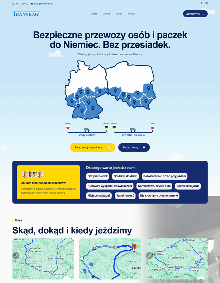 Po kilku dniach masz stronę, która wygląda profesjonalnie i jest od razu przygotowana do działań marketingowych — możesz puszczać reklamy, kierować na nią ruch i zbierać klientów.